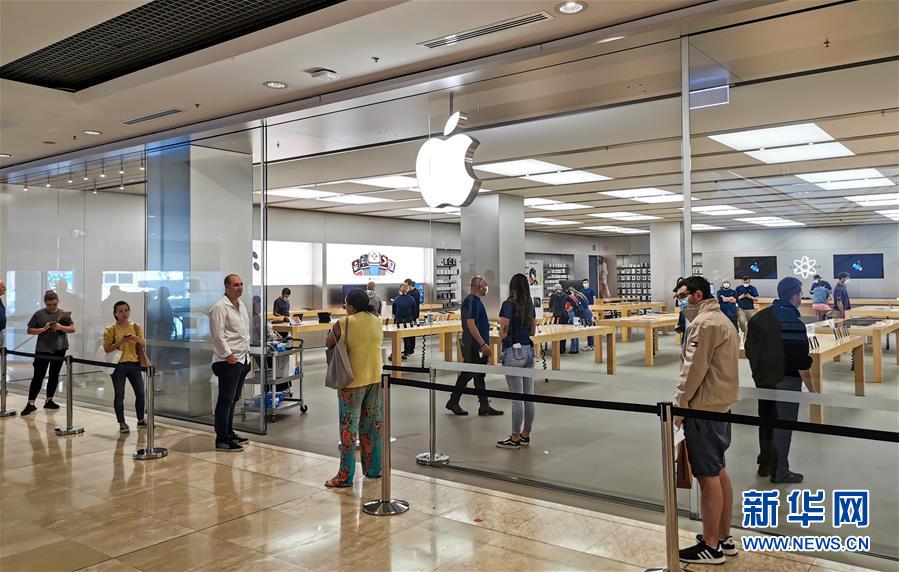 5月8日,在澳大利亞悉尼一家商場,顧客在重新營業(yè)的蘋果專賣店外排隊(duì)。新華社記者白雪飛攝