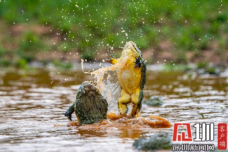 上演“全武行”!非洲雄性牛蛙為爭奪雌性伴侶大打出手