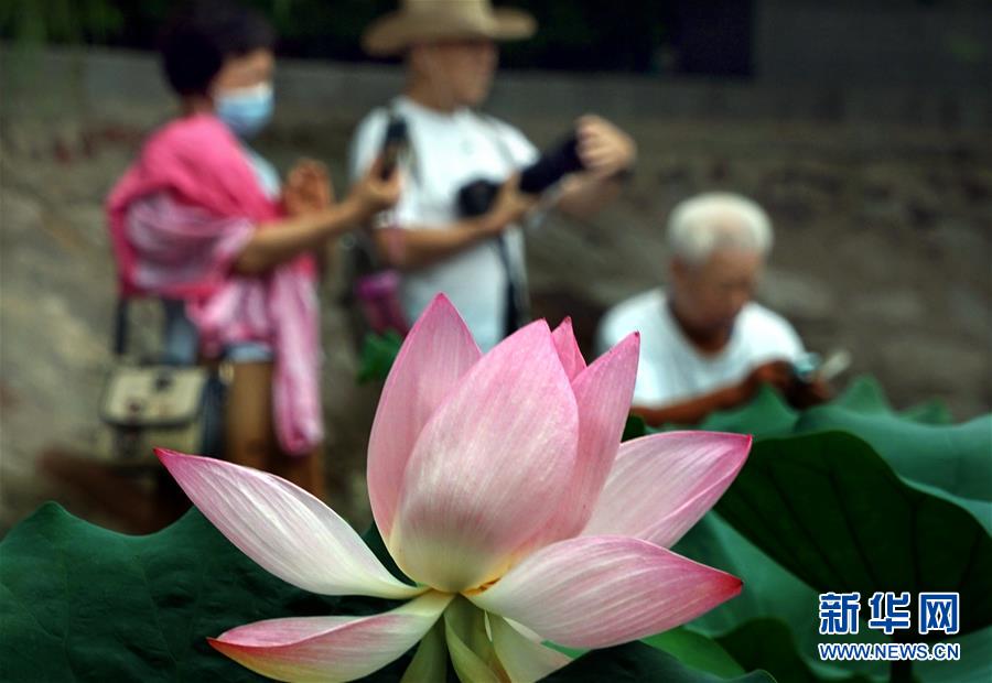6月30日,市民在河南鄭州紫荊山公園內(nèi)拍攝荷花。新華社記者李安攝
