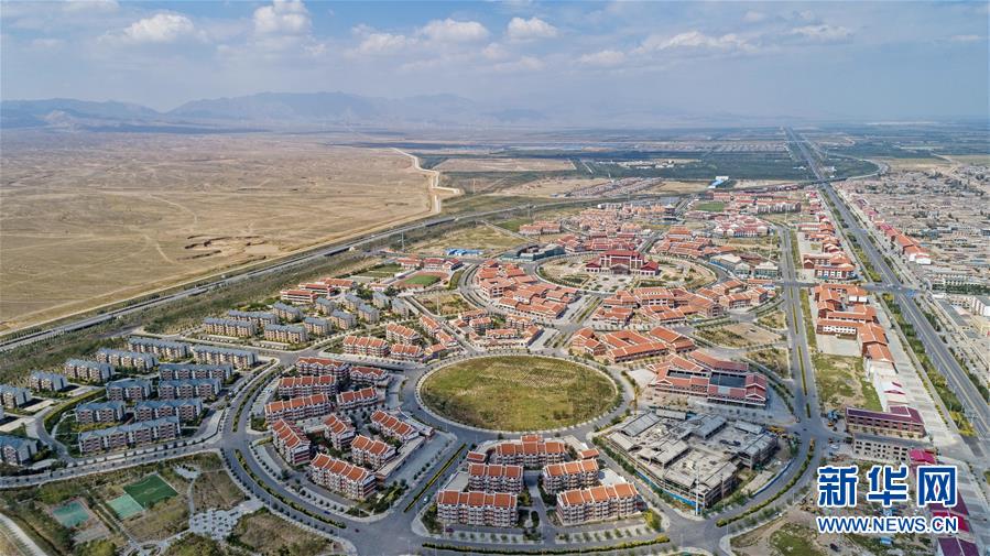 這是2019年9月3日拍攝的寧夏銀川市永寧縣閩寧鎮(zhèn)新鎮(zhèn)建設(shè)全景(無人機照片)。新華社記者王鵬攝
