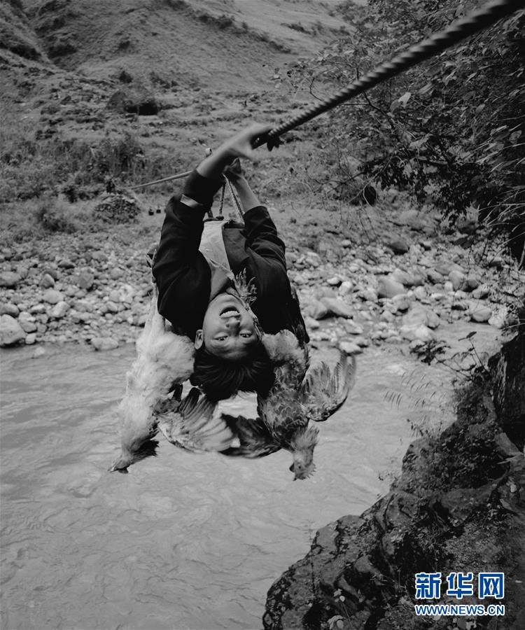 阿達(dá)色貴從阿布洛哈村用溜索過西溪河(2006年3月21日攝)。新華社發(fā)(林強(qiáng)攝)