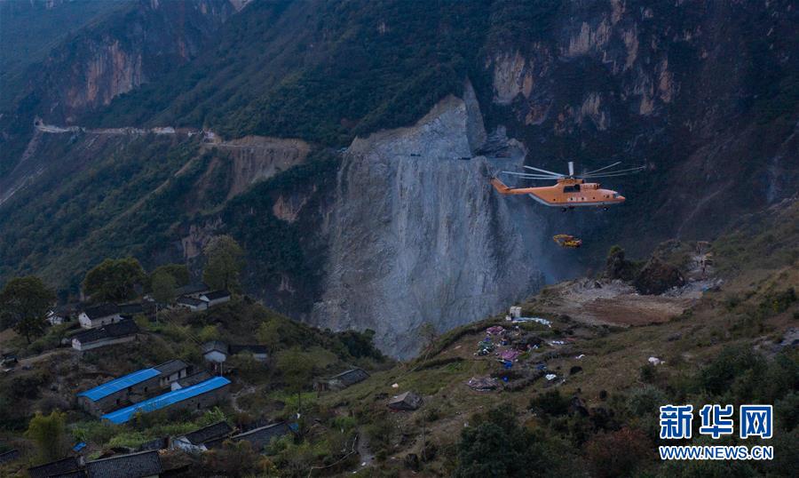 一架米-26重型直升機(jī)在布拖縣阿布洛哈村吊運挖掘機(jī)(2019年12月5日攝)。新華社記者江宏景攝