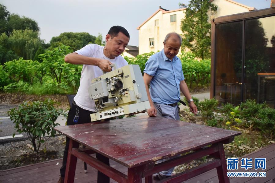 在浙江嘉興桐鄉(xiāng)市洲泉鎮(zhèn)馬鳴村,王志華、朱文炳、朱生榮、朱強(qiáng)四代電影放映員,“接力”放映電影五十余年。一臺(tái)放映機(jī)、幾盤膠片、一面白墻,構(gòu)成他們的“流動(dòng)電影院”,“噠噠”的走帶聲轉(zhuǎn)出了光影老味道,也轉(zhuǎn)動(dòng)了整村人的文化生活。第四代放映人“85后”小伙朱強(qiáng)從小在幕布前長大,深受父輩影響。隨著數(shù)字電影的普及,膠片電影逐漸退場。如今的他在馬鳴電影館、學(xué)校等場所進(jìn)行教學(xué)、展示等活動(dòng),宣傳電影文化。對他而言,一代接一代從事電影工作,就是為了承續(xù)傳統(tǒng)?!皫煚敔斀涛覀冋J(rèn)真放好每部電影,即便只有一位觀眾,我們也不會(huì)讓它停機(jī)。”朱強(qiáng)說。