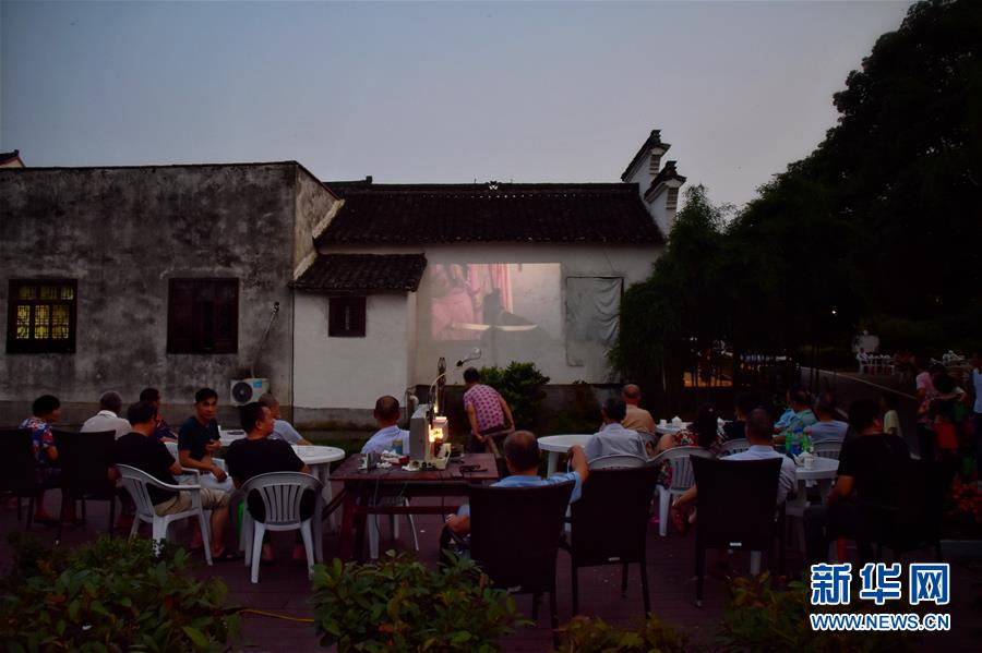 6月30日,天色漸暗,村民自發(fā)圍坐在廣場觀看電影。新華社記者鄭夢雨攝