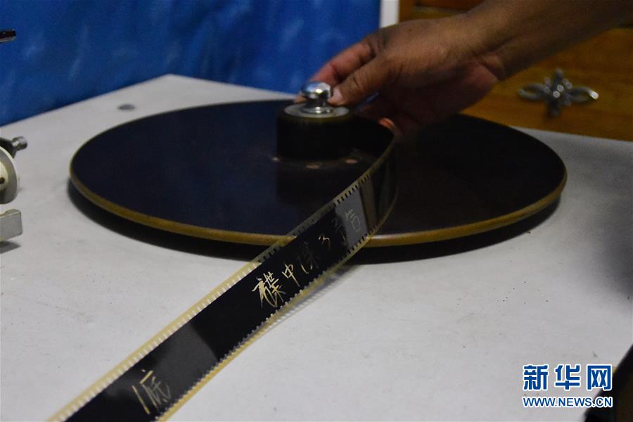 6月30日,朱生榮在當晚電影開播前將膠片調(diào)至起始幀。新華社記者鄭夢雨攝