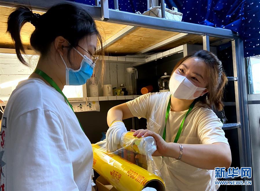 7月1日,在北理工學(xué)生宿舍,兩名輔導(dǎo)員在為畢業(yè)生打包行李。6月29日起,北京理工大學(xué)教職員工開始為2020屆6000多名需要打包的畢業(yè)生集中進(jìn)行行李打包、郵寄和留置物品存放工作。經(jīng)過提前與畢業(yè)生“一對一”溝通,老師們耐心細(xì)致地通過手機(jī)“直播”打包行李的全過程,與每一個(gè)同學(xué)認(rèn)真核對其個(gè)人物品,細(xì)心收納擺放、整理密封、搬運(yùn)寄送,讓不能返校的畢業(yè)生們安心、放心。新華社記者魏夢佳攝