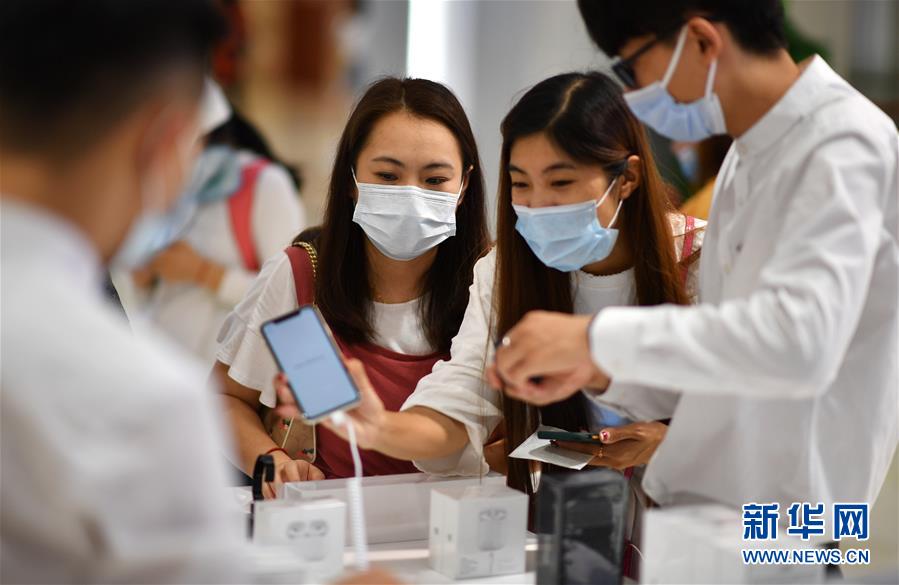 7月1日,顧客在??谌赵聫V場(chǎng)免稅店選購(gòu)手機(jī)等電子消費(fèi)產(chǎn)品。當(dāng)日,海南開(kāi)始實(shí)施調(diào)整后的離島免稅購(gòu)物政策。海南離島旅客每年每人免稅購(gòu)物額度提高至10萬(wàn)元,電子消費(fèi)產(chǎn)品等7類(lèi)新增商品開(kāi)售。新華社記者郭程攝