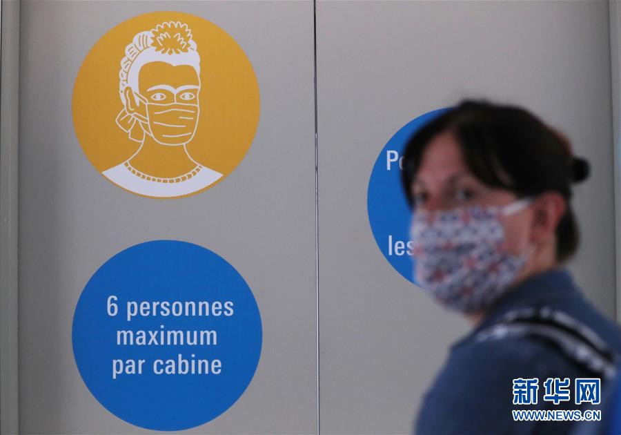 7月1日,法國巴黎蓬皮杜藝術(shù)中心的電梯上貼著“請(qǐng)佩戴口罩”和“最多6人乘梯”的標(biāo)識(shí)。因新冠疫情關(guān)閉的法國巴黎蓬皮杜藝術(shù)中心于7月1日重新開門迎客。目前,中心只開放6層的臨時(shí)展區(qū)和4、5層的現(xiàn)代藝術(shù)常設(shè)展區(qū)。參觀者需提前網(wǎng)上預(yù)約參觀時(shí)段,11歲以上參觀者須佩戴口罩,參觀過程中保持安全距離。新華社記者高靜攝