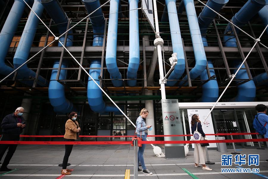 7月1日,參觀者在法國(guó)巴黎蓬皮杜藝術(shù)中心外排隊(duì)等待。因新冠疫情關(guān)閉的法國(guó)巴黎蓬皮杜藝術(shù)中心于7月1日重新開(kāi)門(mén)迎客。目前,中心只開(kāi)放6層的臨時(shí)展區(qū)和4、5層的現(xiàn)代藝術(shù)常設(shè)展區(qū)。參觀者需提前網(wǎng)上預(yù)約參觀時(shí)段,11歲以上參觀者須佩戴口罩,參觀過(guò)程中保持安全距離。新華社記者高靜攝