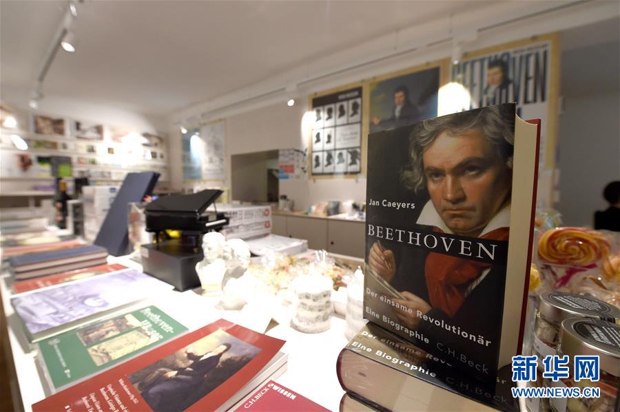 7月2日,奧地利維也納的貝多芬博物館紀(jì)念品商店展示關(guān)于貝多芬的書籍。因疫情關(guān)閉的奧地利維也納貝多芬博物館7月1日起再次開門迎客。該博物館是貝多芬在維也納的故居之一,貝多芬曾在此長(zhǎng)期居住并創(chuàng)作了部分經(jīng)典的音樂作品。2020年是貝多芬誕辰250周年。新華社記者郭晨攝