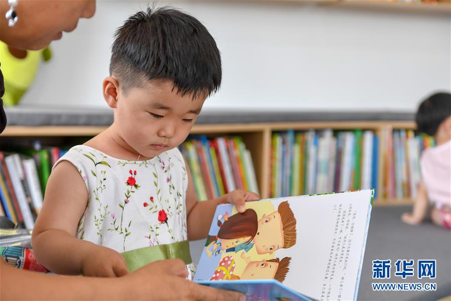 7月2日,在長春市少年兒童圖書館平陽社區(qū)繪本主題分館,家長為小朋友講故事。長春市少年兒童圖書館平陽社區(qū)繪本主題分館位于南關(guān)區(qū)曙光街道平陽社區(qū),目前藏書約5000冊。該館于6月30日揭牌開館,由長春市少年兒童圖書館和南關(guān)區(qū)曙光街道辦事處共同打造,是長春首個(gè)繪本主題圖書分館??蔀橹苓吘用窈蛢和峁﹫D書借閱、數(shù)字閱讀體驗(yàn)、親子活動(dòng)、少兒公益活動(dòng)等服務(wù)。新華社記者張楠攝