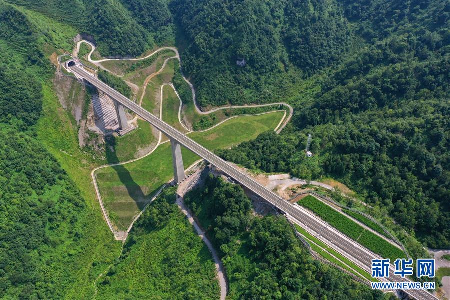 7月6日拍攝的安六鐵路彭家沖一號大橋(無人機照片)。當日,新建貴州安六鐵路(安順至六盤水)聯(lián)調(diào)聯(lián)試工作進入收尾階段,開通前的各項準備工作已基本就緒。安六鐵路線路全長約125公里,設計時速250公里,為國家I級雙線客運專線。建成投用后,貴陽至六盤水的鐵路旅行時間可從現(xiàn)在的3.5小時縮短為1小時左右,貴州省六盤水市將全面接入全國高鐵網(wǎng)。新華社記者劉續(xù)攝