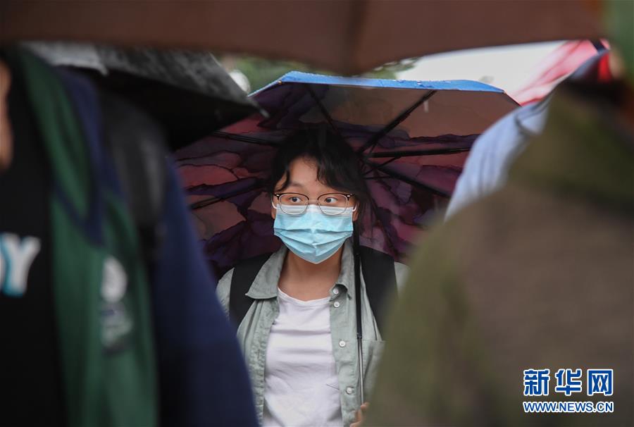 7月7日,在湖北省武漢市東湖中學考點,考生結束首場科目考試后走出考場。當日,2020年高考拉開帷幕。新華社記者程敏攝