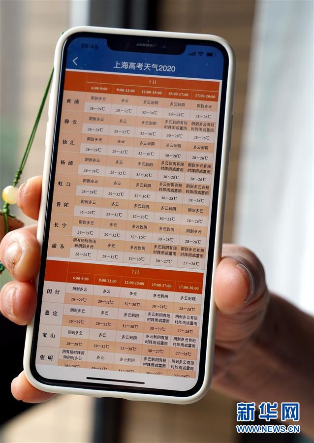 7月7日,上海市氣象部門推出“分時(shí)分區(qū)”的高考?xì)庀蠓?wù)。當(dāng)日,2020年高考拉開帷幕。新華社記者劉穎攝