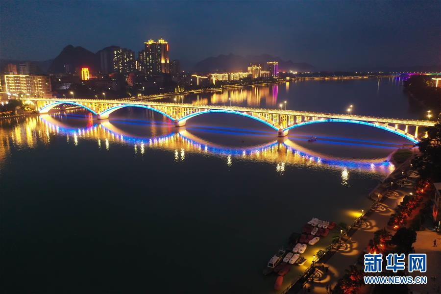 這是融安縣城夜色(7月7日攝,無人機(jī)照片)。夏夜的廣西融安縣城燈火璀璨,景色迷人。新華社記者張愛林?jǐn)z