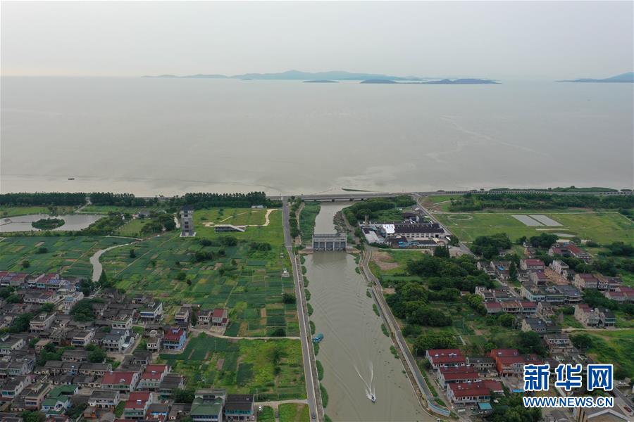 7月7日無人機(jī)拍攝的吳興高新區(qū)幻溇村連通太湖的水閘。太湖水位近期持續(xù)上漲。近日,位于浙江北部的湖州市遭遇多輪降雨,東部平原河網(wǎng)普遍超警戒水位,水庫山塘高位運(yùn)行。7月5日12時30分,湖州市人民政府防汛防旱指揮部將防汛應(yīng)急響應(yīng)提升至Ⅲ級,要求各地密切監(jiān)測汛情,切實(shí)做好各項(xiàng)防范工作,確保安全度汛。新華社記者黃宗治攝