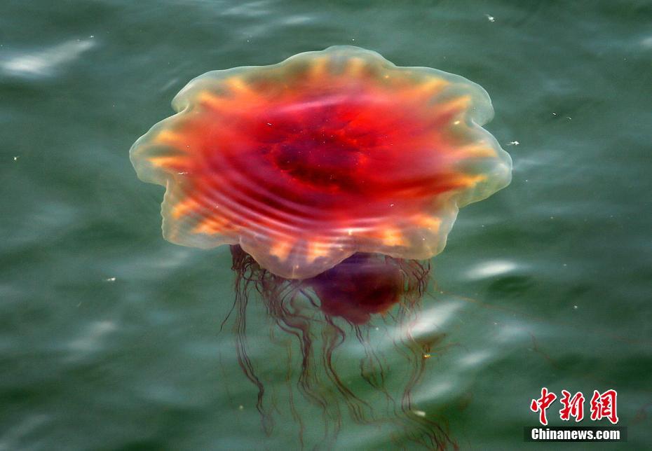 當(dāng)?shù)貢r間2020年6月25日,美國馬薩諸塞州,美國南部海岸近期出現(xiàn)大量獅鬃水母。圖片來源:視覺中國