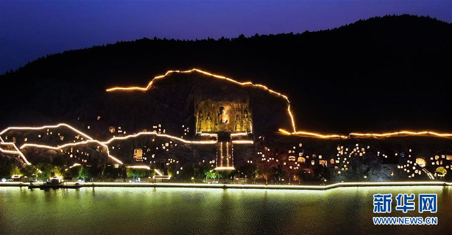 7月7日拍攝的洛陽(yáng)龍門石窟景區(qū)夜景(無(wú)人機(jī)照片)。近日,河南洛陽(yáng)的夜晚愈發(fā)繽紛多彩。立足于厚重的隋唐文化底蘊(yùn),洛陽(yáng)正通過(guò)創(chuàng)新夜游產(chǎn)品打響“古都夜八點(diǎn)”品牌,激活文旅消費(fèi)。新華社記者李安攝