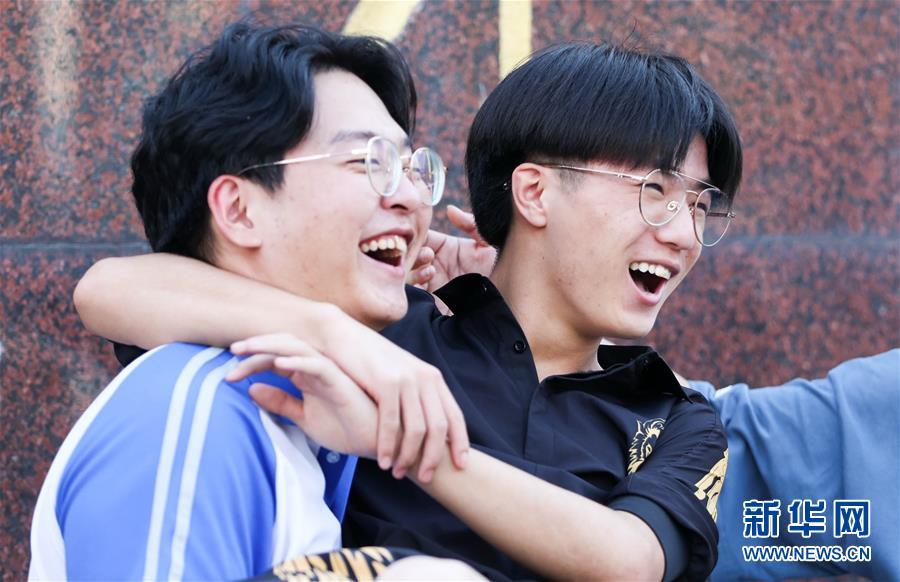 7月8日,在吉林省長春市第八中學考點門口,考生慶祝高考結(jié)束。當日,全國部分地區(qū)2020年高考結(jié)束。新華社發(fā)(顏麟蘊攝)