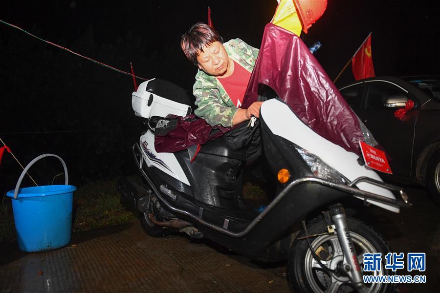 7月7日深夜,在沅江市南嘴鎮(zhèn)目平湖大堤參加防汛值守的村民交接班后準備騎車回家。新華社記者陳澤國攝