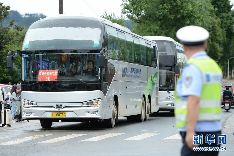 7月9日,接送考生的大巴車抵達(dá)歙縣第二中學(xué)考點(diǎn)。受強(qiáng)降雨影響,2020年高考安徽歙縣考區(qū)7月7日未能如期開(kāi)考,經(jīng)研究并報(bào)教育部批準(zhǔn),歙縣考區(qū)于9日啟用2020年普通高等學(xué)校招生全國(guó)統(tǒng)一考試語(yǔ)文、數(shù)學(xué)(文、理)科目副題進(jìn)行考試。新華社記者黃博涵攝