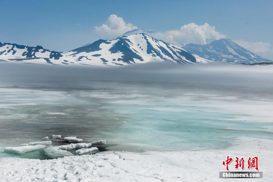 當(dāng)?shù)貢r(shí)間2020年7月7日,俄羅斯堪察加半島,Gorely火山附近的Sredinnoye火山湖。這個(gè)湖斷斷續(xù)續(xù)的,是6月底到8月初融雪形成的。圖片來(lái)源:視覺(jué)中國(guó)