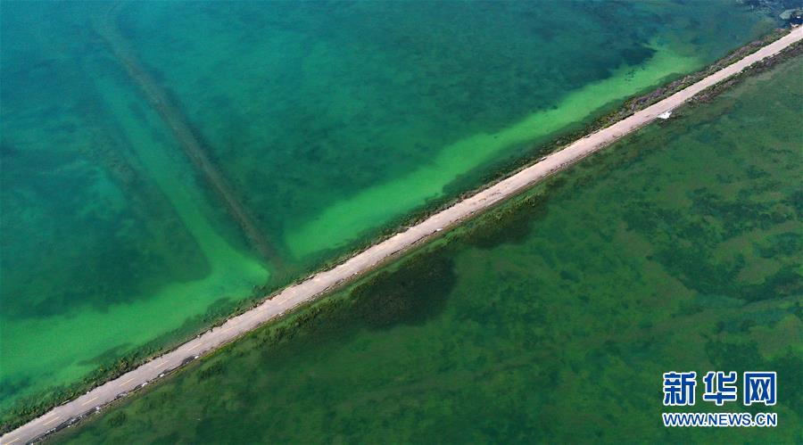 7月10日拍攝的青海湖畔風光(無人機照片)。盛夏時節(jié),被譽為“中國最美湖泊”的青海湖畔景色宜人,藍天、白云、湖水與草原組成一幅壯美的畫卷。新華社記者張宏祥攝
