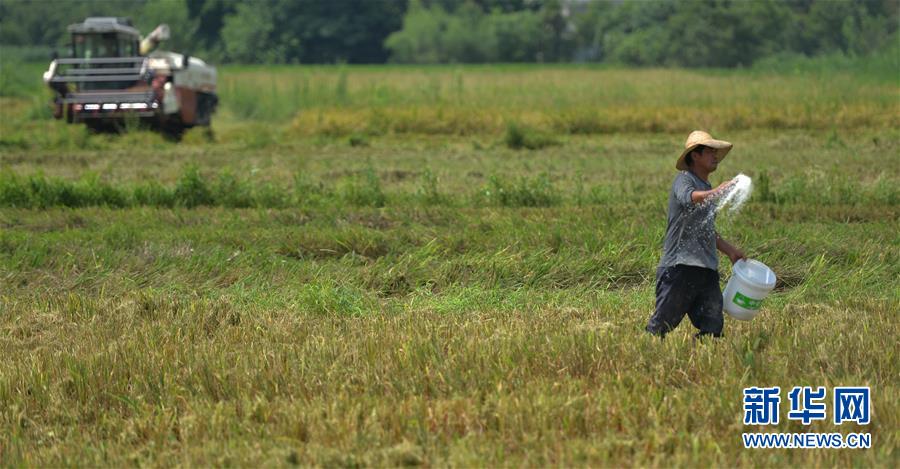 7月11日,村民在湖南省衡陽(yáng)市衡陽(yáng)縣臺(tái)源鎮(zhèn)臺(tái)九村收割后的稻田施肥,為種植晚稻做準(zhǔn)備。近日,湖南各地農(nóng)村陸續(xù)進(jìn)入“雙搶”季,農(nóng)民緊抓農(nóng)時(shí),搶收搶種,力爭(zhēng)糧食穩(wěn)產(chǎn)豐收。新華社記者趙眾志攝