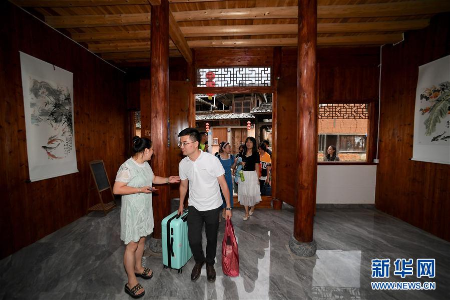 7月3日,來(lái)自福州的游客準(zhǔn)備入住浦源村鯉魚溪畔的一家民宿。新華社記者 姜克紅 攝