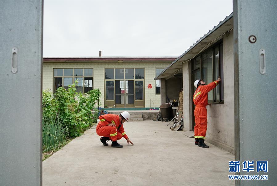 7月12日,消防救援人員在河北省唐山市古冶區(qū)卑家店鎮(zhèn)前巍峰山村村民家中排查。新華社記者 牟宇 攝