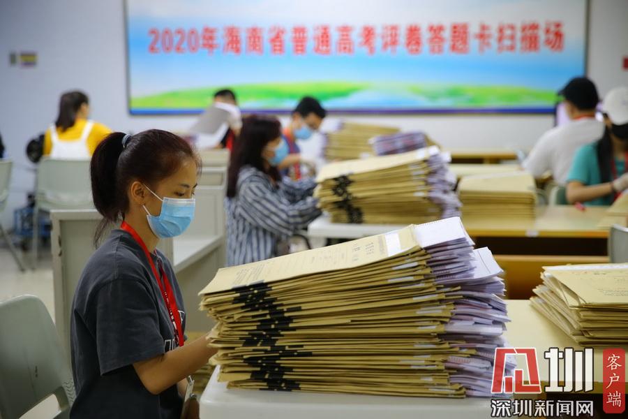 2020年7月13日,在海南師范大學高考評卷場,工作人員仔細拆封考卷并進行掃描入電腦,整個過程井然有序。在評卷現(xiàn)場的入口,除了有武警把守之外,所有工作人員進入到評卷場均有專人使用手柄式金屬探測器對其進行安檢,并通過身份證識別系統(tǒng)中進行身份識別,方可以進入??忌痤}卡由武警24小時值守,并實行嚴密的視頻監(jiān)控。