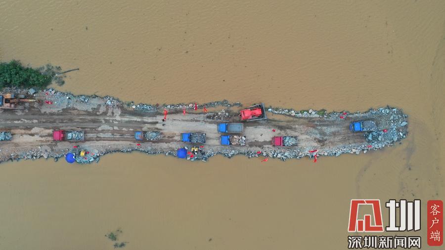 2020年7月13日,江西鄱陽縣問桂道圩,決口封堵進入最后攻堅階段。受持續(xù)強降雨影響,7月8日20時35分,位于江西省上饒市鄱陽縣鄱陽鎮(zhèn)的問桂道圩堤出現(xiàn)漫決險情,導(dǎo)致良田、村莊受淹,受淹村民已安全轉(zhuǎn)移。連日來,中國安能第二工程局在此處對問桂道決口圩堤進占填筑,目前進入最后攻堅階段。