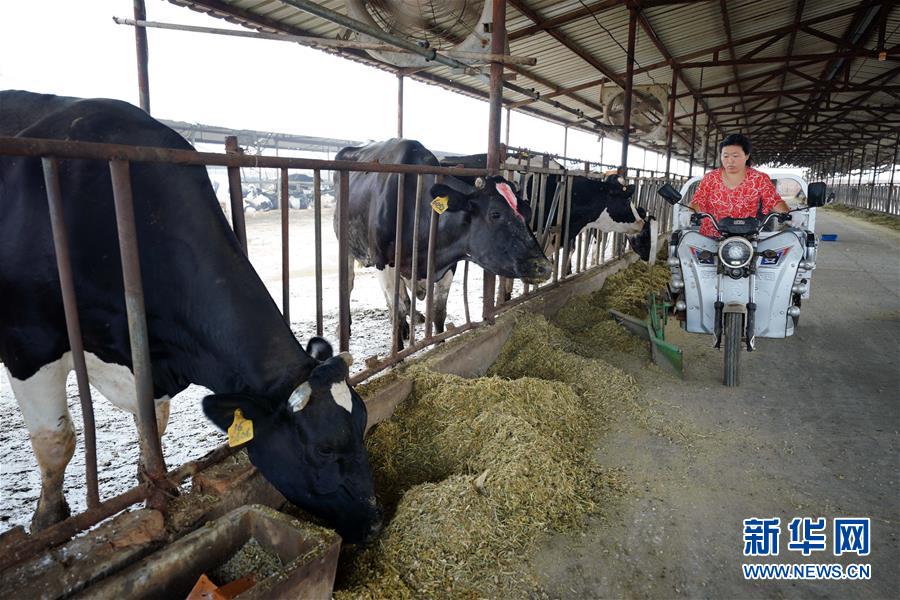 7月11日,河北省清河縣永興奶牛養(yǎng)殖場(chǎng)的工人正在工作。近年來,河北省清河縣將扶貧工作與現(xiàn)代農(nóng)業(yè)結(jié)合,以龍頭企業(yè)為引領(lǐng),成立合作社,鼓勵(lì)貧困戶利用扶貧資金入股奶牛養(yǎng)殖場(chǎng),幫助他們常年獲得穩(wěn)定收益。同時(shí),貧困戶農(nóng)閑時(shí)還可到產(chǎn)業(yè)園區(qū)打工,既拿股金,又掙薪金,實(shí)現(xiàn)“造血式”脫貧。新華社記者 牟宇 攝