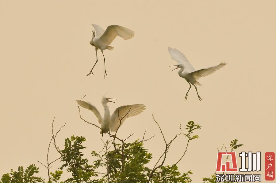 山東青島“鷺舞”林間 宛如一幅寫意山水畫