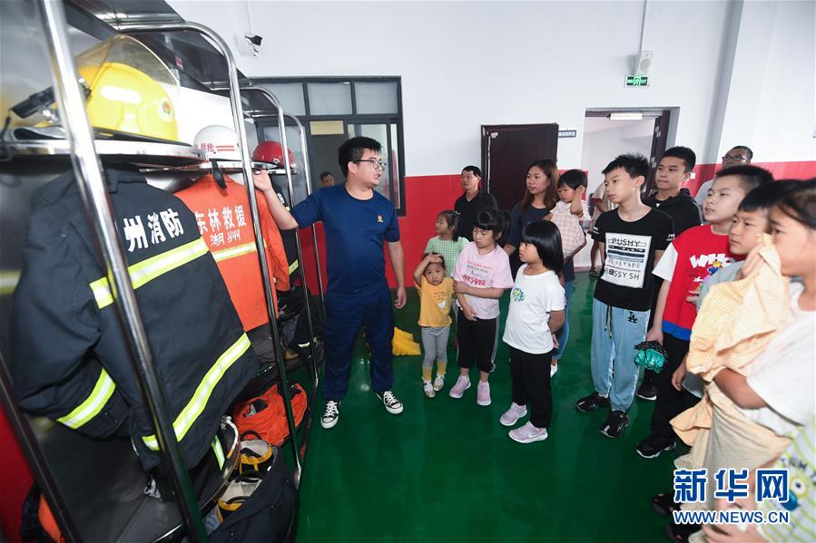 7月16日,東林鎮(zhèn)消防綜合應(yīng)急救援隊隊員在給學(xué)生們介紹消防服及消防器材。當(dāng)日,浙江省湖州市吳興區(qū)東林鎮(zhèn)舉辦暑期“安全防護(hù)小超人”主題活動。活動由醫(yī)護(hù)人員、消防隊員等為學(xué)生及家長講授日常安全避險及溺水急救知識,中小學(xué)們還在現(xiàn)場學(xué)習(xí)了簡易包扎、心肺復(fù)蘇的正確方式,并了解滅火器、滅火毯等消防器材的使用,為學(xué)生平安過暑期打好安全防護(hù)“預(yù)防針”。新華社記者 徐昱 攝
