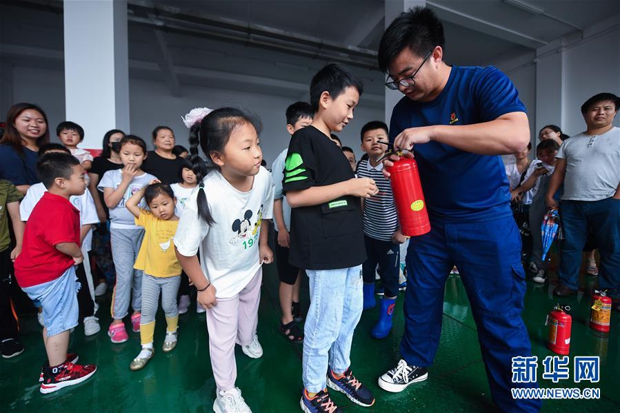 7月16日,東林鎮(zhèn)消防綜合應急救援隊隊員在給學生們講解滅火器的使用方法。當日,浙江省湖州市吳興區(qū)東林鎮(zhèn)舉辦暑期“安全防護小超人”主題活動?;顒佑舍t(yī)護人員、消防隊員等為學生及家長講授日常安全避險及溺水急救知識,中小學們還在現(xiàn)場學習了簡易包扎、心肺復蘇的正確方式,并了解滅火器、滅火毯等消防器材的使用,為學生平安過暑期打好安全防護“預防針”。新華社記者 徐昱 攝