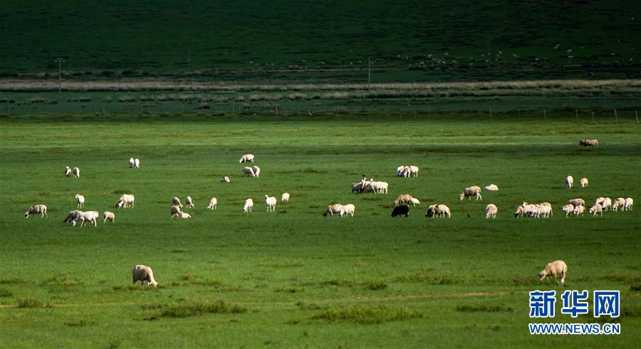 7月18日,羊群在內(nèi)蒙古錫林郭勒盟正鑲白旗境內(nèi)的草原上覓食。連日來,內(nèi)蒙古錫林郭勒盟迎來多次降雨,境內(nèi)廣袤的草原經(jīng)過雨水的滋潤,煥發(fā)出勃勃生機。新華社記者魏婧宇攝