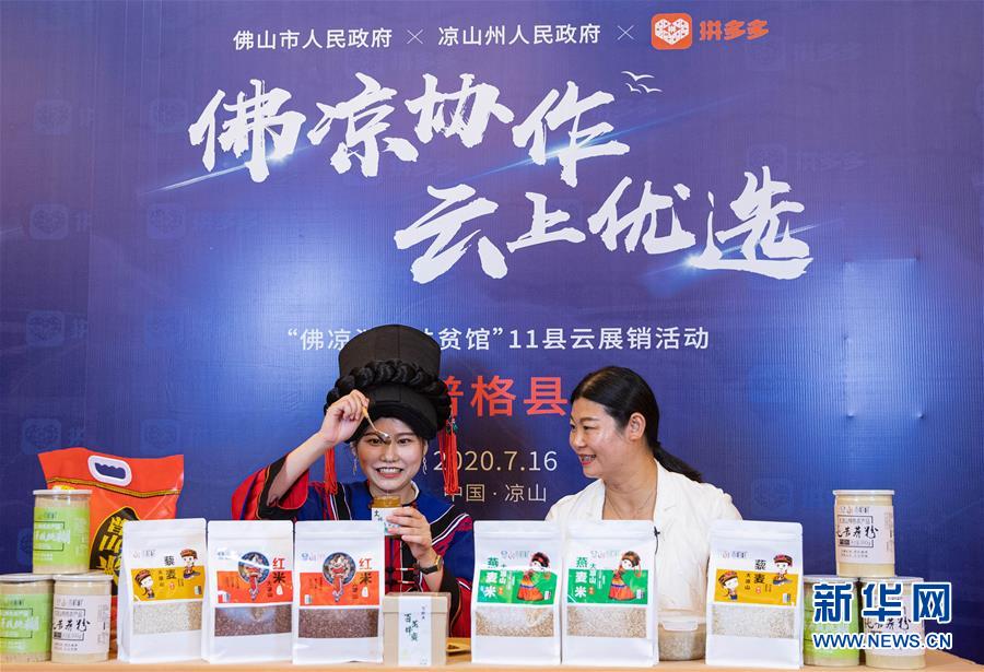 7月18日,在涼山州昭覺(jué)縣粵川東西部扶貧協(xié)作項(xiàng)目產(chǎn)業(yè)園,昭覺(jué)縣副縣長(zhǎng)徐航(右)和王涼萍(左)在直播活動(dòng)中向網(wǎng)友推薦產(chǎn)業(yè)園出產(chǎn)的水果番茄。7月16日至18日,來(lái)自四川省涼山彝族自治州、廣東省佛山市的十余名干部攜手大涼山網(wǎng)絡(luò)主播,走進(jìn)電商“云展銷”直播間和粵川東西部扶貧協(xié)作項(xiàng)目產(chǎn)業(yè)園,為涼山11個(gè)縣的農(nóng)特產(chǎn)品直播“帶貨”,通過(guò)電商銷售帶動(dòng)消費(fèi)扶貧。新華社記者江宏景攝