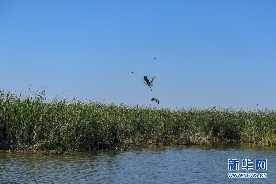 鳥(niǎo)類(lèi)在查干湖濕地棲息(7月20日攝)。新華社記者張楠攝