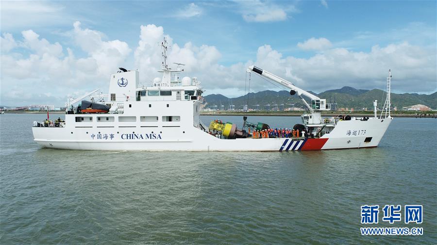 “海巡173輪”在試航(資料圖片,無人機照片)?!昂Q?73輪”7月22日正式列編交通運輸部南海航海保障中心廣州航標處。這艘排水量2228噸的大型航標工作船是中國交通運輸系統(tǒng)南海海區(qū)裝備最先進的船,將用于粵港澳大灣區(qū)和南海海區(qū)水上浮標的布設(shè)和維護。新華社發(fā)