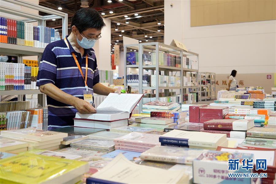 7月23日,讀者在書展上選購圖書。當(dāng)日,第十屆江蘇書展在江蘇蘇州開幕,400多家出版發(fā)行單位參展,吸引眾多讀者選購圖書。新華社記者楊磊攝