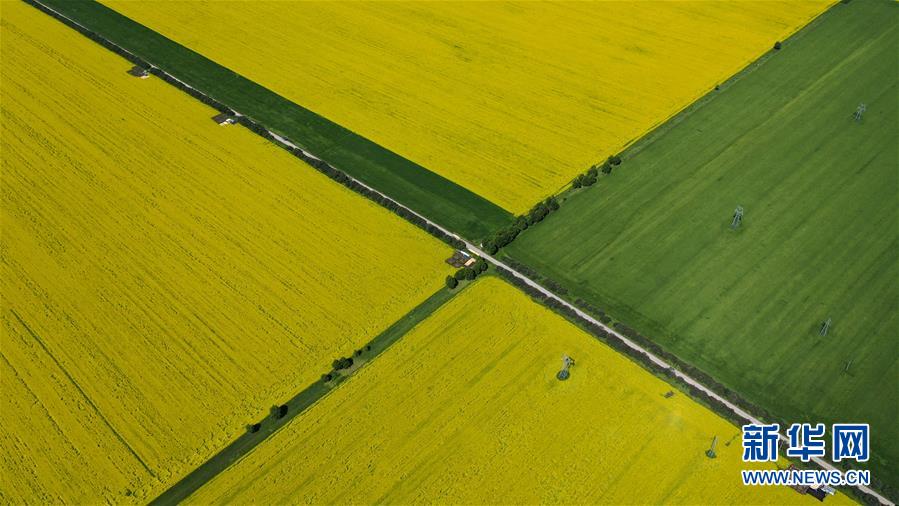 這是7月22日拍攝的門源回族自治縣境內(nèi)的油菜花田(無人機(jī)照片)。新華社記者 吳剛 攝