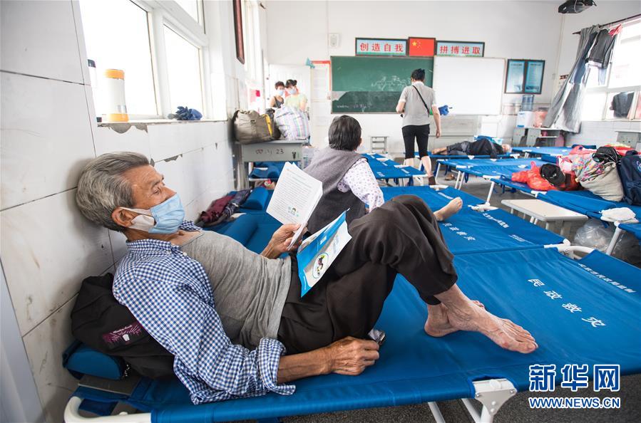 7月9日,村民戴口罩在湖北省黃梅縣濯港鎮(zhèn)十里益海小學集中安置點休息。新華社記者 肖藝九 攝