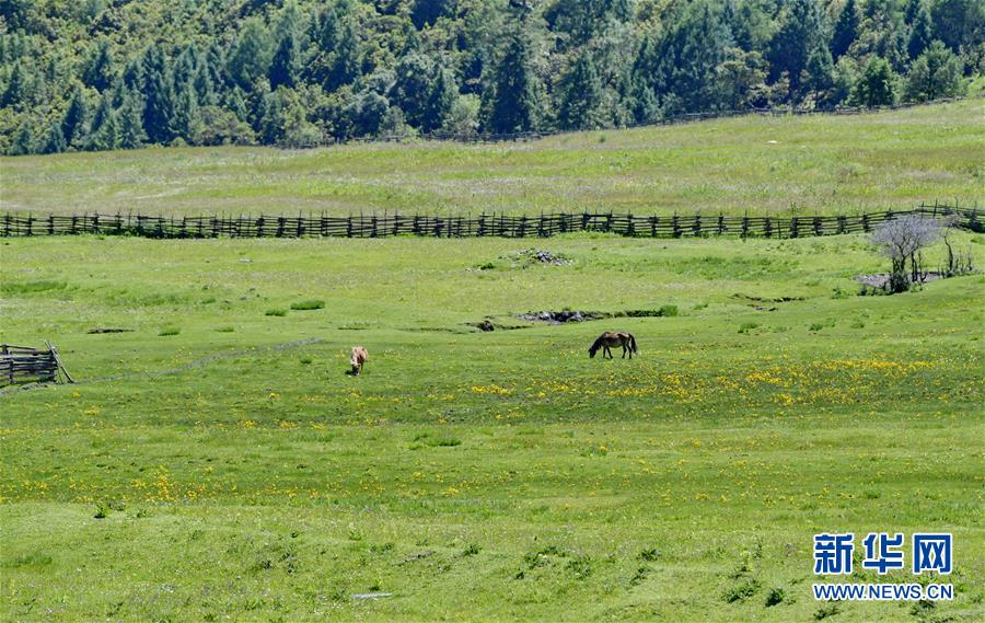 魯朗旅游小鎮(zhèn)的牧場(7月26日攝)。新華社記者 張汝鋒 攝