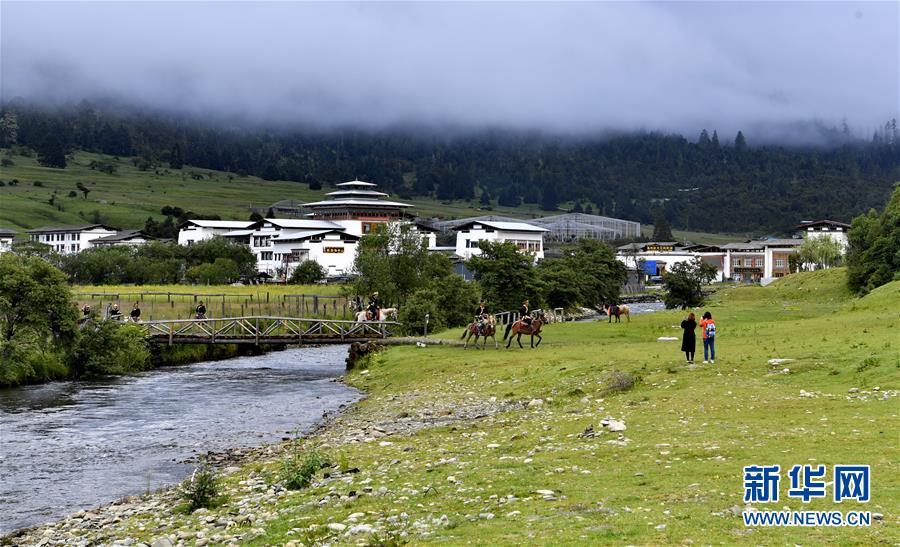 農(nóng)牧民在魯朗旅游小鎮(zhèn)騎行(7月26日攝)。新華社記者 張汝鋒 攝