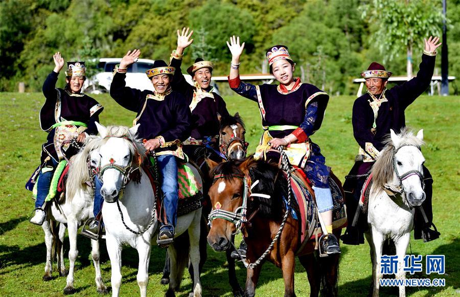 魯朗旅游小鎮(zhèn)農(nóng)牧民向游客招手致意(7月26日攝)。新華社記者 張汝鋒 攝