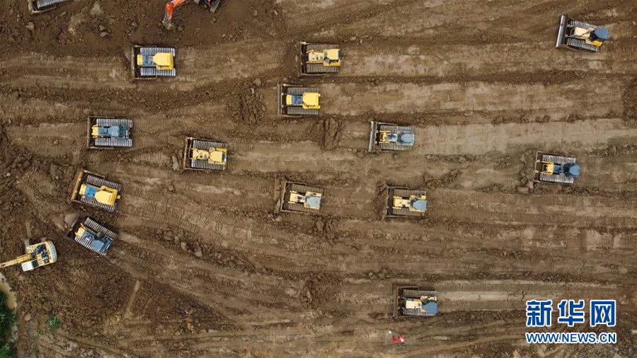 7月28日,在姜唐湖蓄洪區(qū)戴家湖一處涵閘險情處置現(xiàn)場,人們操作機械設備在搶筑臨時圩堤(無人機照片)。新華社記者張端攝