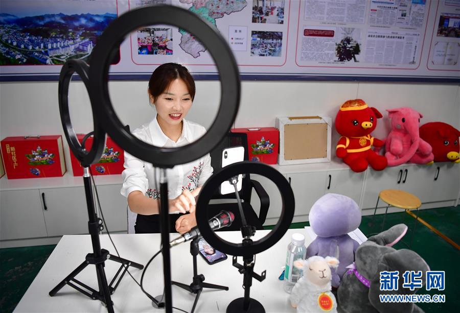 7月24日,在陜西平利縣老縣鎮(zhèn)錦屏社區(qū)一間直播間,電商主播王秀梅在推介當地產品。陜南地區(qū)地處秦巴山區(qū),是陜西脫貧攻堅的主戰(zhàn)場。近年來,陜南各縣區(qū)因地制宜、精準施策,通過發(fā)展社區(qū)工廠、特色種植、旅游扶貧、技能培訓、電商帶貨等措施,促進多種產業(yè)發(fā)展,助力農民增收。新華社記者邵瑞攝