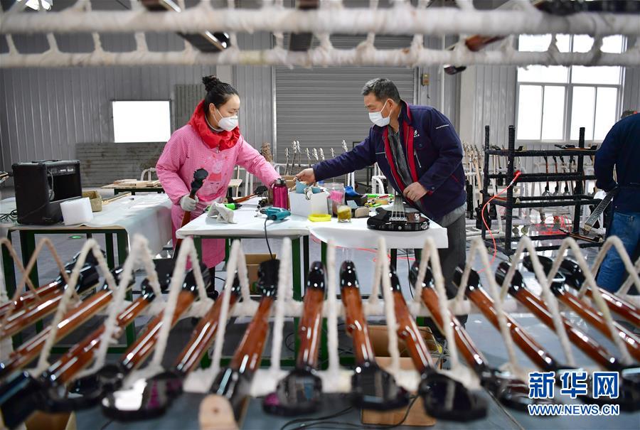 在陜西漢中市城固縣博望街道辦事處江灣社區(qū)一家樂器廠內(nèi),工人在制作貝斯(3月12日攝)。陜南地區(qū)地處秦巴山區(qū),是陜西脫貧攻堅的主戰(zhàn)場。近年來,陜南各縣區(qū)因地制宜、精準施策,通過發(fā)展社區(qū)工廠、特色種植、旅游扶貧、技能培訓、電商帶貨等措施,促進多種產(chǎn)業(yè)發(fā)展,助力農(nóng)民增收。新華社記者邵瑞攝