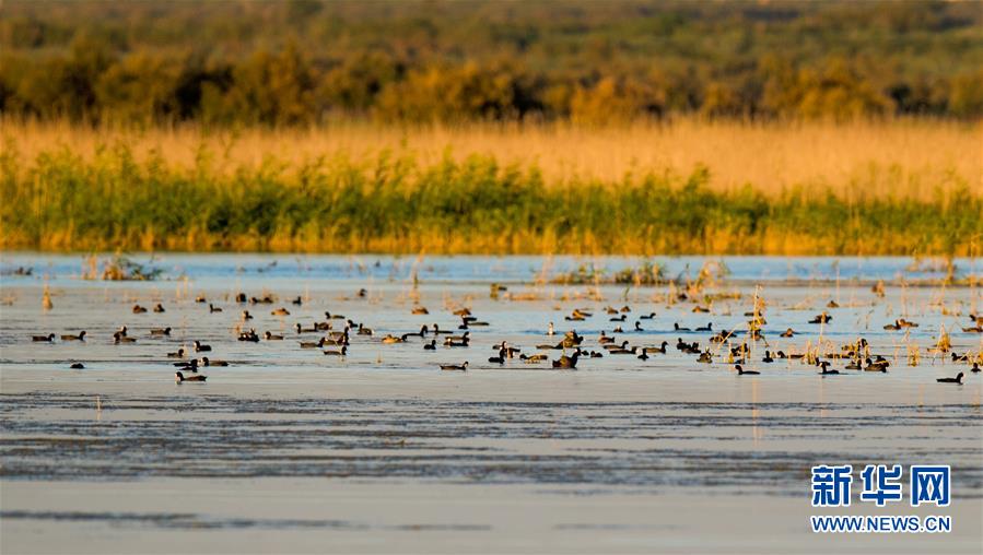 7月28日,灰雁在桃力廟—阿拉善灣海子覓食。鄂爾多斯?jié)竦匚挥趲觳箭R沙漠、毛烏素沙地接壤地帶,2002年被列入國際重要濕地名錄。從2006年開始,由于濕地湖面萎縮、湖心島消失,在此筑巢繁殖的世界瀕危物種遺鷗幾近消失。近年來,當(dāng)?shù)夭扇《喾N治理措施,濕地生態(tài)環(huán)境逐步好轉(zhuǎn)。2019年起,濕地內(nèi)的桃力廟—阿拉善灣海子迎來遺鷗大規(guī)?!盎貧w”。如今,40多種鳥類在此棲息,鄂爾多斯?jié)竦刂匦鲁蔀轼B類的樂園。新華社記者連振攝